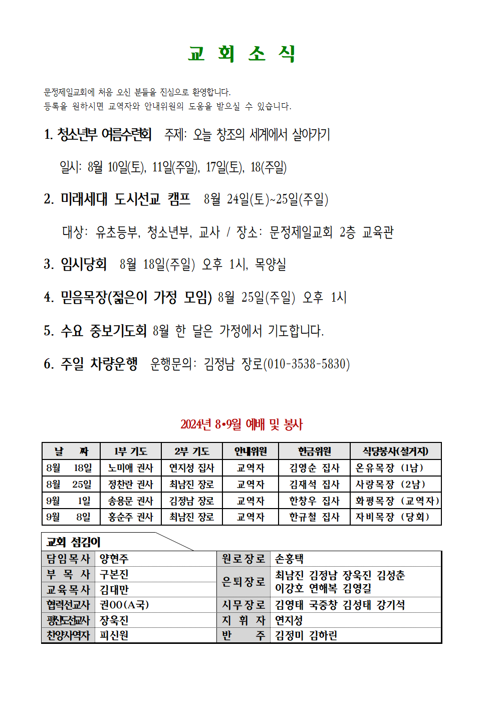 2024년 8월 18일(셋째주) 주보