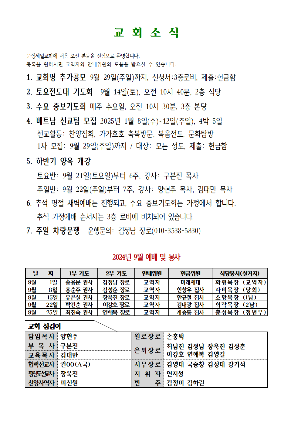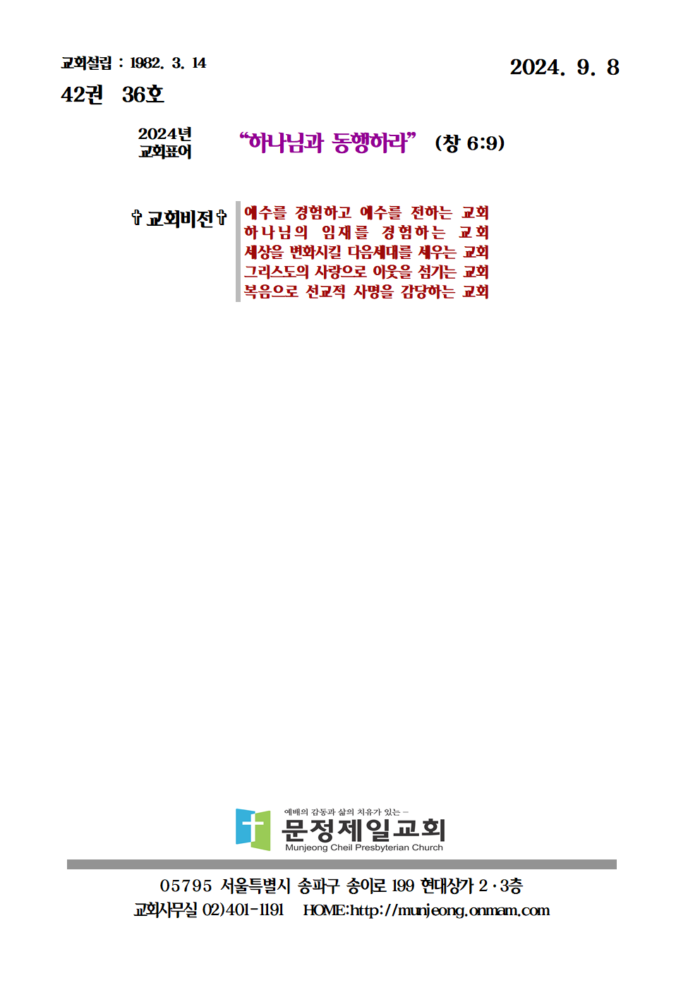 | 다음글 | 2024년 9월 1일(첫째주) 주보 | 구본진 | 2024.08.31 | 0 | 180 |