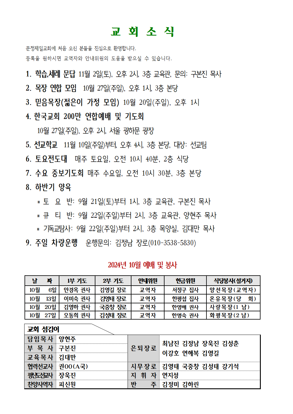 | 다음글 | 2024년 10월 13일(둘째주) 주보 | 구본진 | 2024.10.12 | 0 | 206 |
