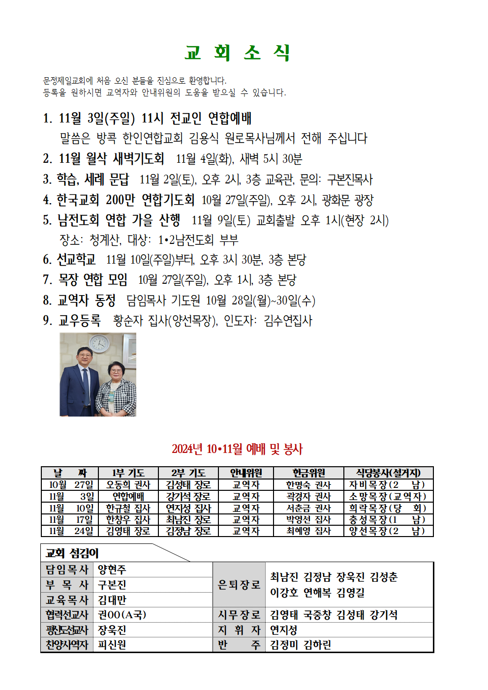 | 다음글 | 2024년 10월 20일(셋째주) 주보 | 구본진 | 2024.10.19 | 0 | 203 |