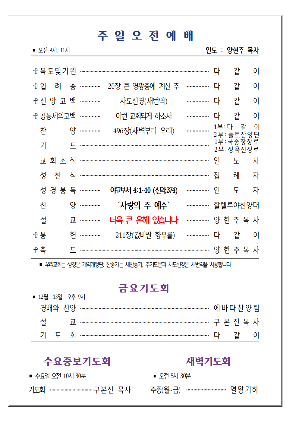 | 이전글 | 2024년 12월 8일(둘째주) 주보 | 구본진 | 2024.12.07 | 0 | 173 |
