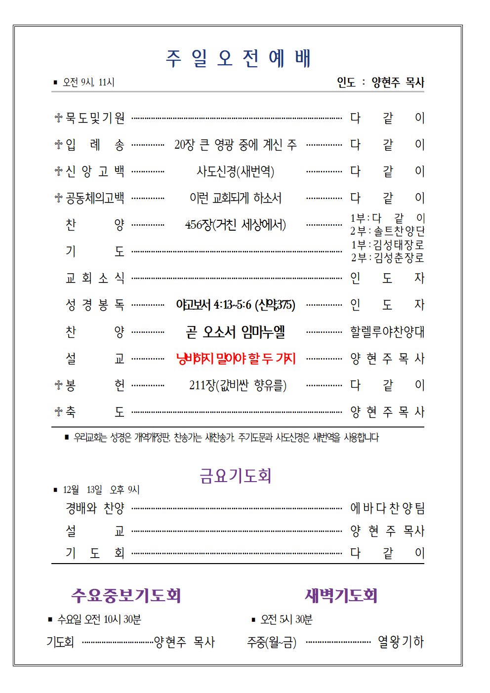 | 이전글 | 2024년 12월 15일(셋째주) 주보 | 구본진 | 2024.12.14 | 0 | 195 |