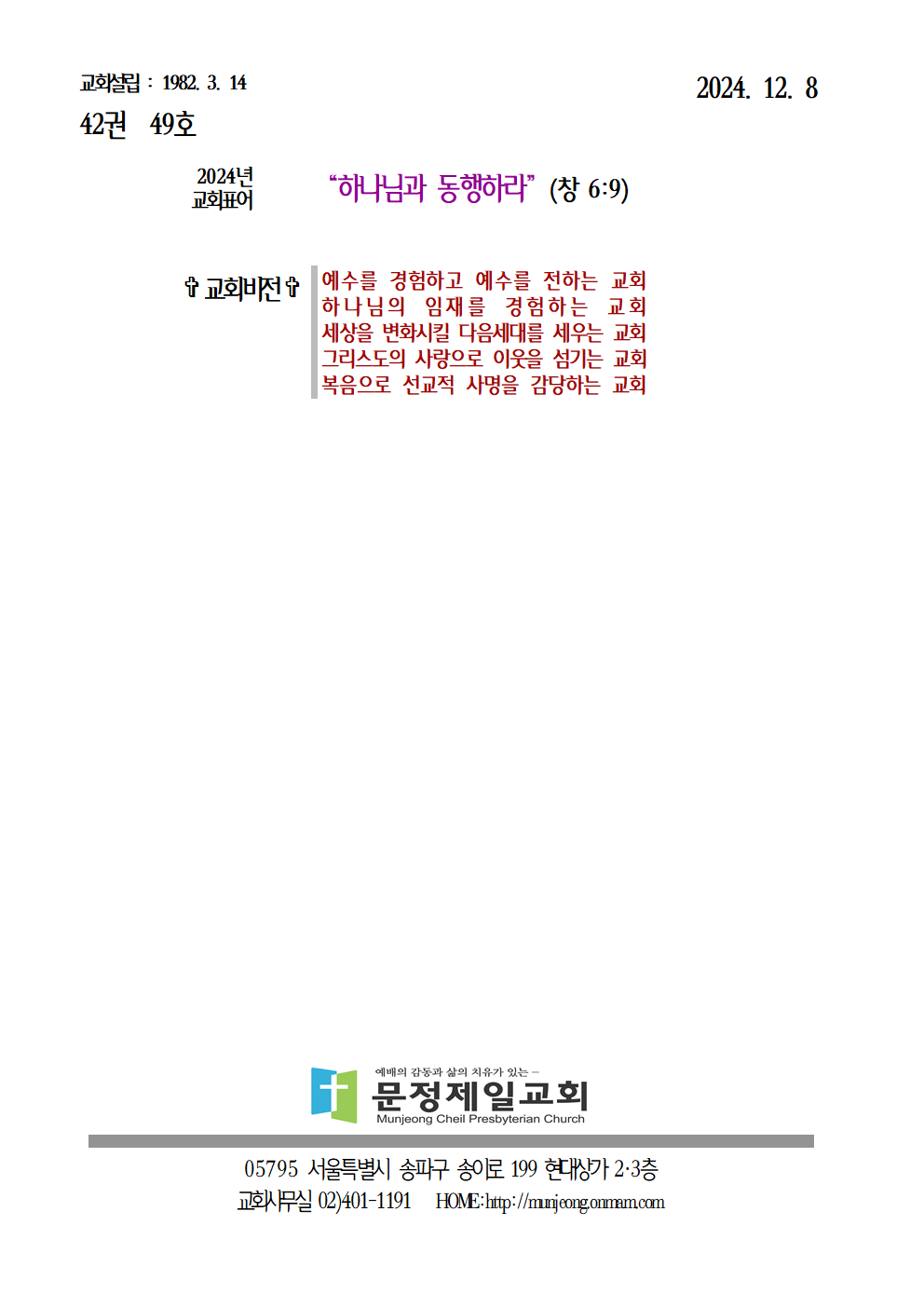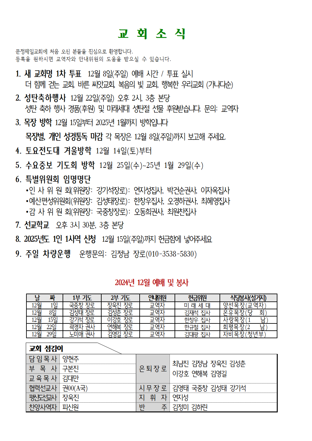 | 다음글 | 2024년 12월 1일(첫째주) 주보 | 구본진 | 2024.11.30 | 0 | 198 |