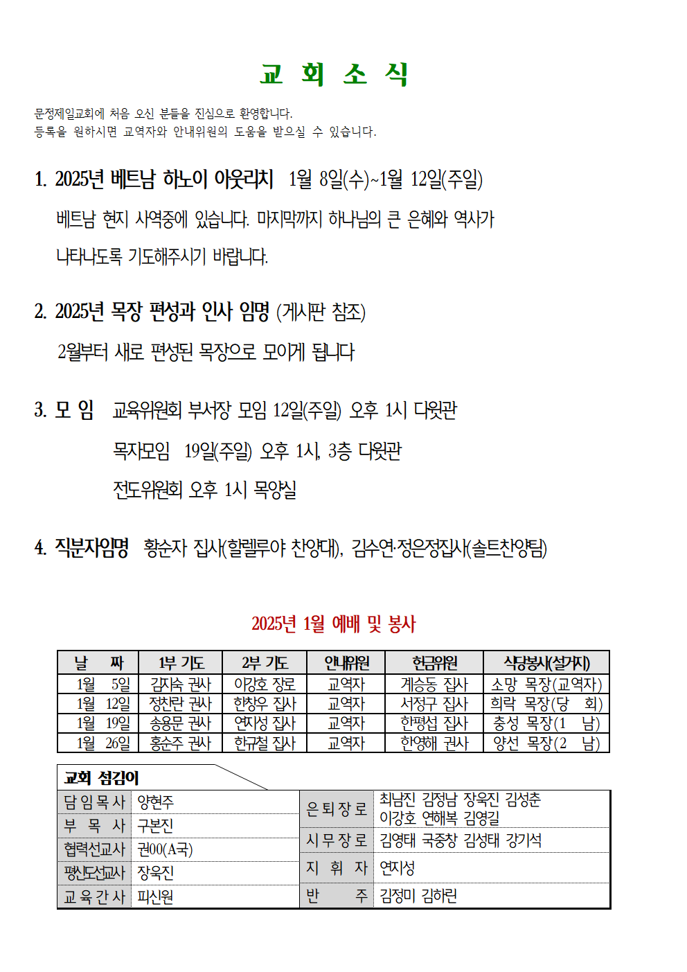2025년 1월 12일( 둘째주) 주보