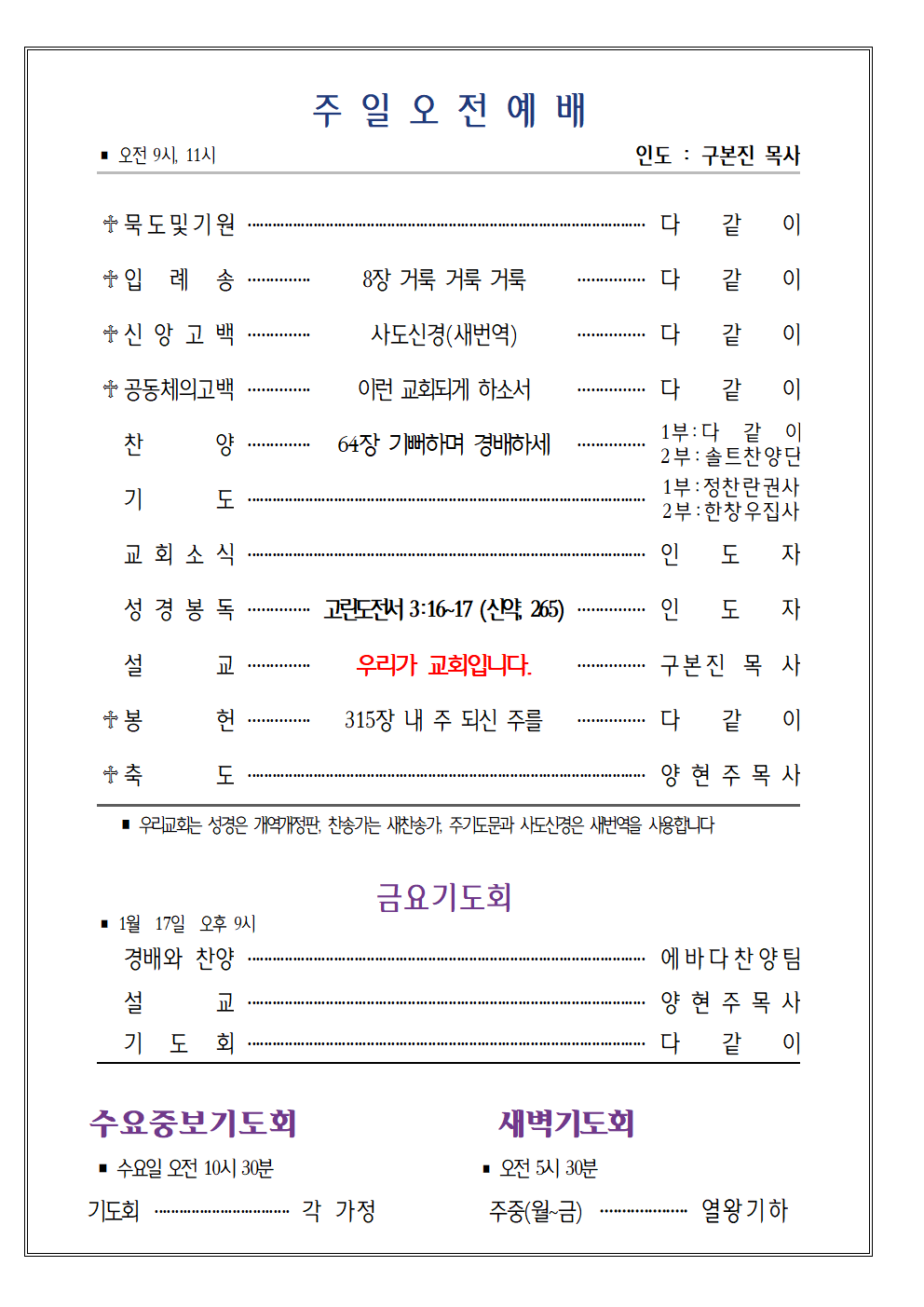 | 이전글 | 2025년 1월 19일( 셋째주) 주보 | 양현주목사` | 2025.01.18 | 0 | 193 |